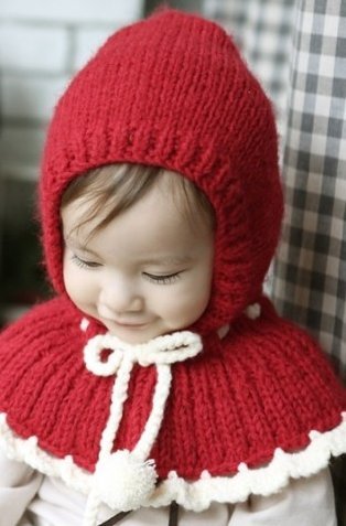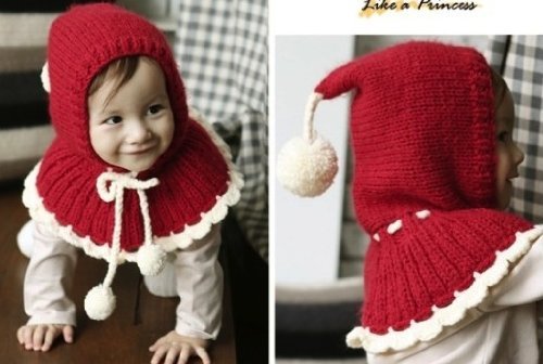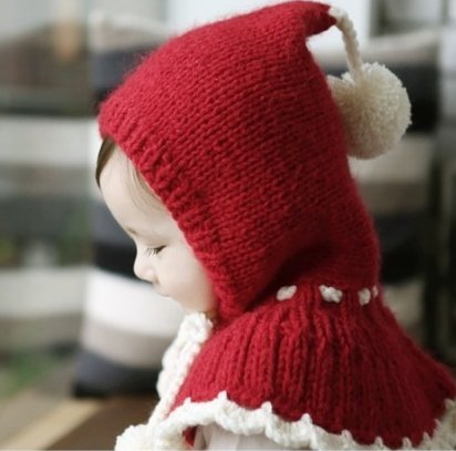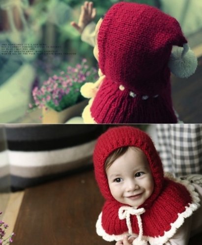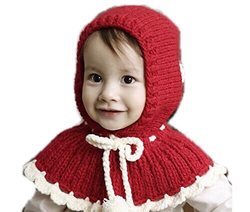 【Kan Sei+】絵本の中から飛び出した赤ずきんちゃん! 肩からしっかり防寒 よく動く子供でも肩や耳を冷やさないから温かさ持続 ニット帽子 /毛糸/手編みなので赤ちゃんの頭にも安心 (赤)