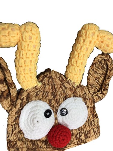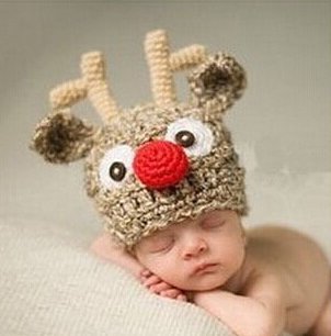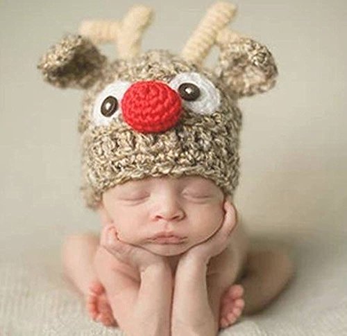 【Kan Sei+】トナカイ ツノ付き ニット帽 冷房や冬の寒さからも守ってくれる おむつ姿をキュートに演出! 人と違った出産祝いに最適 ハーフバースデー (トナカイ)