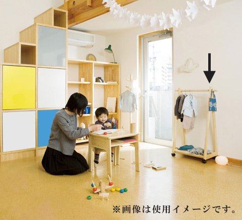 ハンガー部;天然木(直径28mm) 塗装(ナチュラル) - W650xD380xH1000mm