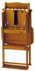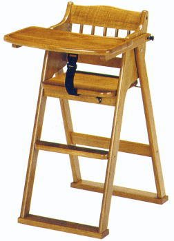 天然木の光沢が美しい、テーブルつきの折りたたみチャイルドチェアです。