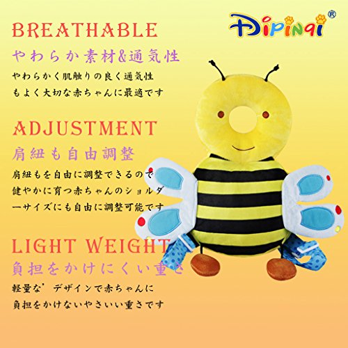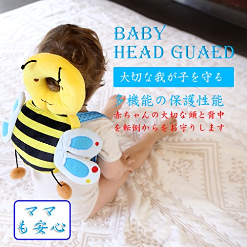 KAKIBLINベビーヘッドガード ごっつん防止 保護 転倒防止 保護クッション キッズ 乳幼児用 頭を保護できる 怪我防止 ハチ 赤ちゃん 頭保護ガード 適用月齢6ヶ月~32ヶ月 安全 室内 乳幼児用 保護枕 ミツバチ