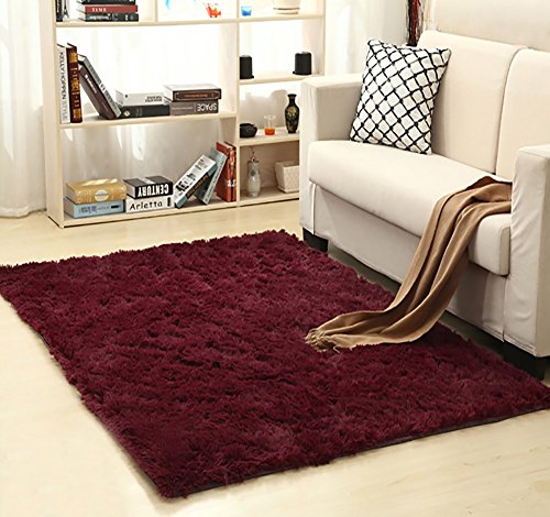 超ソフト寝室カーペット、装飾座って部屋Shaggyエリアラグ、子供ふわふわPlayingパッド吸収性滑り止め下、水で&クイックドライエリアラグ 23"x47" レッド
