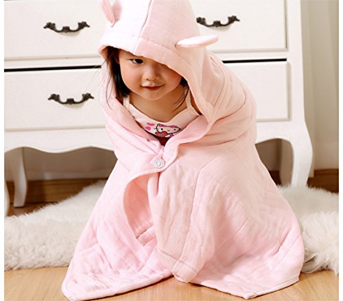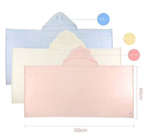 - 【多機能】子供用の多機能なバスタオルです。バスタオル:六層の綿100%ガーゼ材質を採用して、通気性が良く、吸水&速乾能力も抜群で、赤ちゃんの体の水分を吸収易いから、風邪を引く恐れが防ぎます。毛布:65cm * 130㎝である幅広い毛布が、保温性も持って、赤ちゃんが寝返りを打つでも構いません。ヘアドライタオル:タオルの上の帽子の設計が、急速に赤ちゃんのヘアの水を拭き取ることができます。ヘアドライの機能性も持つタオルです。