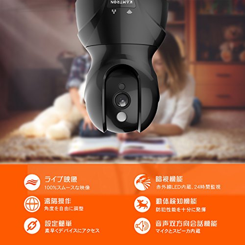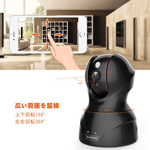 KAMTRON(カムトロン) ネットワークカメラ 高画質 100万画素 Wi-Fi対応 暗視撮影 マイク内蔵 アラーム機能 猫/ペット/赤ちゃん 見守り 日本語説明書付き 監視カメラ 防犯カメラ ワイヤレス ベビーモニター ブラック