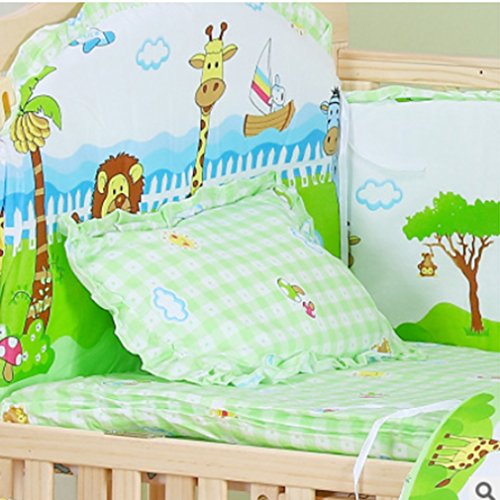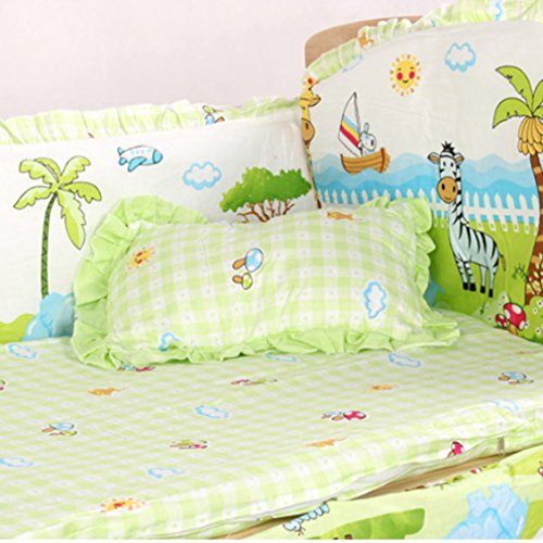 KANGMING お子様シングルサイス キャラクター敷布団+掛布団+マットレス+枕+枕元 5点セット 子供用寝具 肌ふとん 丝綿ライナー カバー取り外し可能 (グリーン)