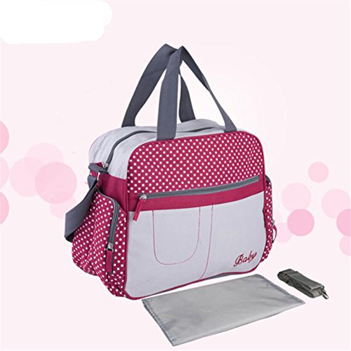 KANGMING 多機能 マザーズバッグ 大容量 防水 ショルダー トート ベビーカー用 3way ママバッグ ベビー用品 オムツ替えシート/ベビーカーストラップ付き (レッド)