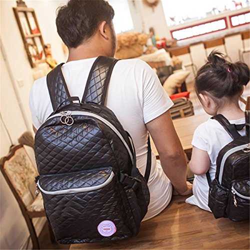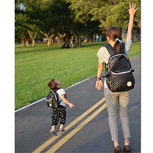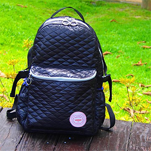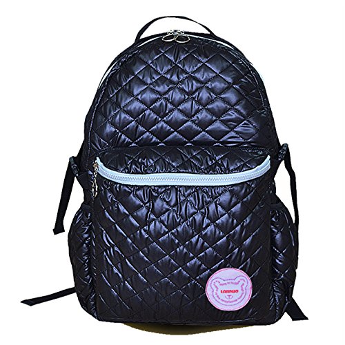 KANGMING 多機能 リュックサック ハンドル付き マザーズバック お手提げ 花柄 大容量 ポリエステル生地 通学/通勤/お出かけ/旅行 ショルダーバッグ レディース/メンズ/子供に適応 (ブラック)