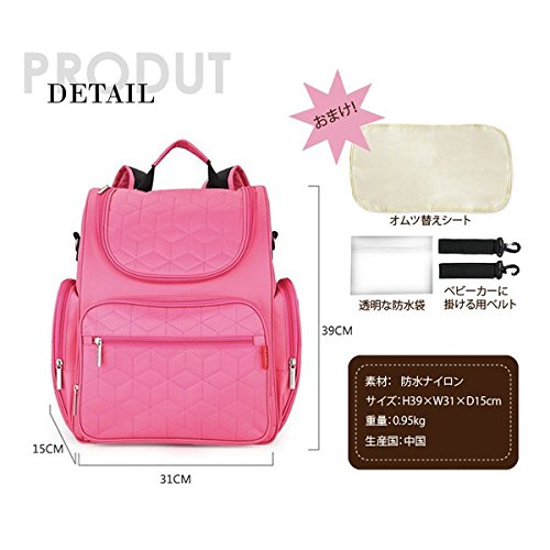 KANGMING 防水 マザーズバッグ 3WAY リュック トート カートバッグ 多機能 大容量 オムツ替え用シート付 ファッション (レッド)