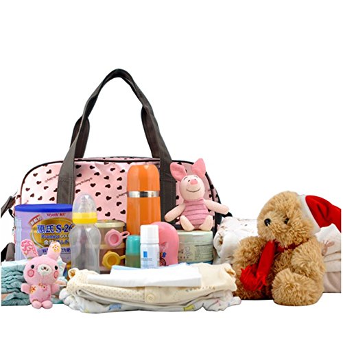KANGMING マザーズバッグ 3way ショルダーバッグ 斜めがけ トート ベビーカー 大容量 バッグ シンプルなのに機能的 ショルダーストラップ付き ママバッグ (ピンク)