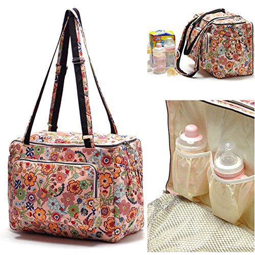 KANGMING 多機能 レディースバッグ ショルダーバッグ マザーズバッグ ショルダー 斜めがけ 大きめ 花柄 ショルダーストラップ調整可能 (イエロー)