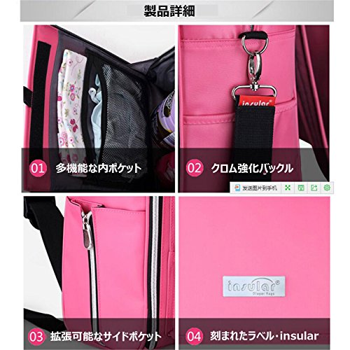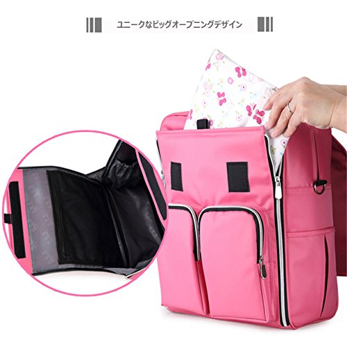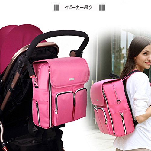 KANGMING 多機能 マザーズバッグ リュック 3WAY 大容量バッグ トート リュックサック ベビーカー用 防水 ポケット充実 オムツ ファッション 旅行 (ピンク)