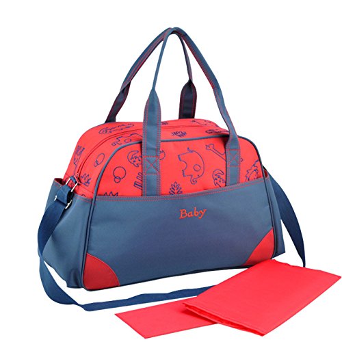 KANGMING マザーズバッグ 多機能 大容量 軽量 防水 ショルダー トート ベビーカー用 3way ママバッグ オムツ替えシート付き ベビー用品 ベビーカー用 (レッド)