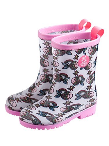 可愛くアートに仕上がっているお魚(フィッシュ)柄に、ピンクの縁取りがアクセントの長靴です。サイドにかおかおパンダのロゴが付いています。もちろん、ただのおしゃれな長靴だけじゃない!安価なキッズ長靴にありがちなビニール製の一体成型のソールに比べ、当製品はお子様が走ってもよじれにくい二重底構造です。裏底の凸凹エッジは雪道にもお使い頂けます。インソールは洗う際にも取り外せて便利。後ろには、お子様でも脱ぎ履きしやすいよう、大き目のタグを取り付けました。