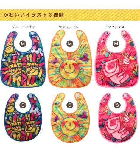 みんながにっこり笑顔になれる元気な色使いのかわいい、かおかおパンダのイラストの赤ちゃんよだれかけ。使うシーンや成長に合わせてお使い頂けるようSとM、2種類のサイズをご用意致しました。マジックテープでワンタッチ着脱OK。