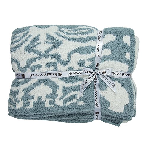 KASHWERE (カシウェア) 国内検針済ダマスク ブランケット DAMASK BLANKET T-30-923-52 Silver Blue /Creme ギフトにも! [並行輸入品]