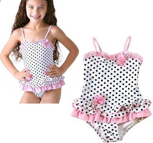 MACK ケイトマック ベビー キッズ 子供 ワンピース 水着 スイム ウエア 2T~6X ホワイト地にドット (4T 105cm)