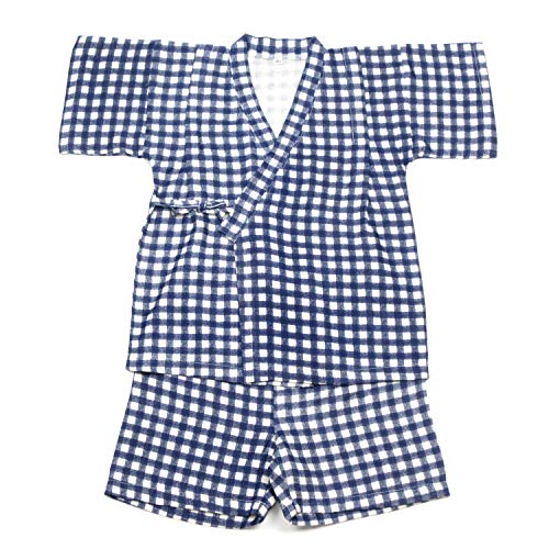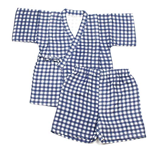 甚平男の子女の子 ギンガムオーガニックコットンWガーゼ 安心・安全の日本製 100cm ネイビー