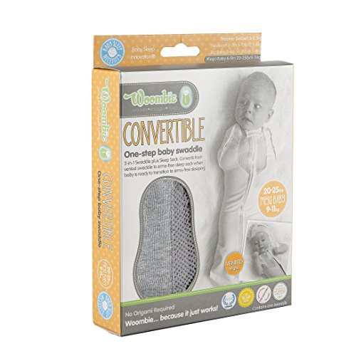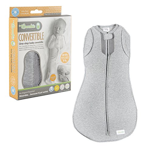 VENTED CONVERTIBLE SWADDLE - Swaddling has been proven to help babies sleep better, longer, and safer. The Woombie swaddle has received over 15 awards with its innovative design and has been nominated as Mom's Favorite Swaddle for effectiveness and ease of use. Appreciated by moms and little ones alike, our convertible swaddle adds an arms free option to the original peanut shape, allowing you to use whichever option is more comfortable for your baby! Designed for babies 20-15 pounds.;STRETCHY BUT SNUG BABY FIT - The Woombie Vented Convertible Baby Swaddle allows comfortable natural arm and leg movement during sleep and can convert into a single leg onesie with an open-arm option. With special, multi-dimensional stretch fabric, the Woombie snuggles and moves with the baby, recreating a womb-like environment and simulating the feeling of being held, touched, and cuddled.;LIGHTWEIGHT AND BREATHABLE - Our swaddle has a seamless interior for maximum comfort and features a 2-way zipper that allows for quick diaper changes at night. What's more, this model features vented mesh pockets, making it perfect for lighter sleeping.;DESIGNED BY CERTIFIED SPECIALISTS - Designed by a certified infant care specialist and nursing team, our swaddles don't unravel like blankets, which can potentially block airways. Our swaddles are safe, encourage back sleeping, and promote self-soothing by allowing babies to hold and touch the inside of the garment.;PRODUCT SPECIFICATIONS - Package includes (1) Woombie Vented Convertible Baby Swaddle - Vented Twilight (Heather Gray) - Mega 20-25 lbs. Woombie Sizes: Preemie: 16-17 inches, 3-6 lbs. Newborn: 20-22 inches, 5-13 lbs. Big Baby: 24-26 inches, 14-19 lbs. Mega: 27-29 inches, 20-25 lbs