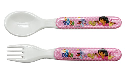 Dora the Explorer utensil set;Comes with a spoon and fork;Great for young children learning to eat with utensils;Officially licensed product;Each utensil measures 5in (12.5cm) long