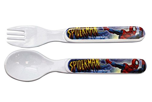 Spiderman utensil set;Comes with a spoon and fork;Great for young children learning to eat with utensils;Officially licensed product;Each utensil measures 5in (12.5cm) long