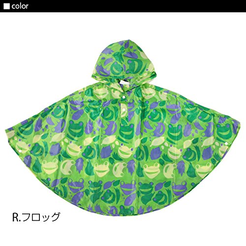 カエル柄のキュートなキッズレインポンチョ。お子様も雨の日コーディネートを楽しめます。天気が悪い日も、お出掛けが楽しくなりそう♪濡れたポンチョを収納できる便利なきんちゃく付です。【カラー】≪全1色≫R.フロッグ 【素材】ポリエステル【生産国】中国製【サイズ】約120cm[着丈]約60.5cm・巾着袋[縦]約15.5cm×[横]約20.5cm※実寸は実際のサイズと異なる場合があります。ご了承ください。【重量】約89g 【注意点】※火気のそばでのご使用はお避けください。※使用後は、湿気を十分に取り、風通しの良い場所で陰干ししてください。※表面が汚れた場合には、固く絞った布でやさしく拭き取ってください。※長時間使用すると、撥水性が落ちてくる場合がございます。その際は撥水性のスプレーを表面から塗布して下さい。※カメラやモニターの性質により、画像と実物の色の違いがある場合がございますのでご理解願います。