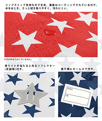 夜ライトが当たると光るリフレクター(反射板)付き、後ろ側にネームタグ付き。