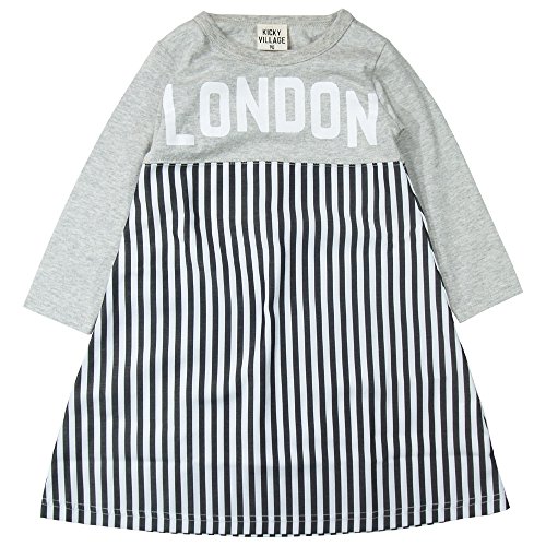 《H28年秋冬物》KICKY VILLAGE(キキイ ビレッジ) 天竺+布帛ストライプワンピース 110cm/グレー NO.KV-15410