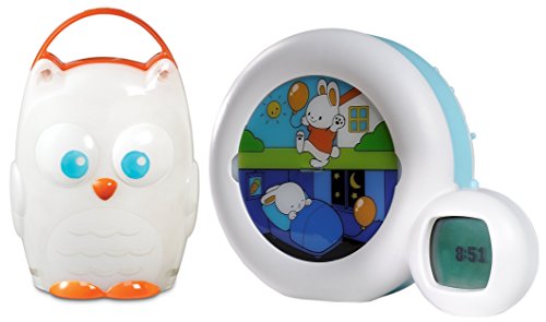 The Kid'Sleep moon helps kids stay in bed until it is time to get up;The Kid'Sleep moon offers the smart sunset go to sleep function and the smart moonset wake up process, which gives kids a 10 minute warning for sleep time and get up time;The Kid'Sleep moon has 3 settings for nighttime, nap and weekend, 4 choices of alarm sounds (or the choice of no alarm), and 4 levels of brightness to choose from;The Kid'Sleep moon helps children fall asleep with 4 different choices of lullabies. Color recognition is not required;Owl light provides a comforting friend at bedtime. Easy-grasp handle and one-button operation are perfect for toddlers. 20 minute timer automatically shuts off to conserve batteries. LED technology is cool to the touch. Includes 3 AAA batteries