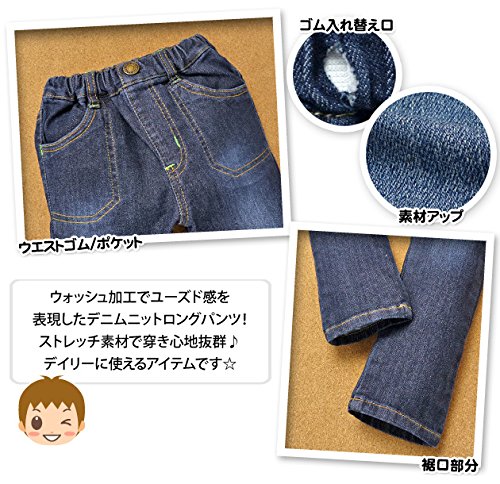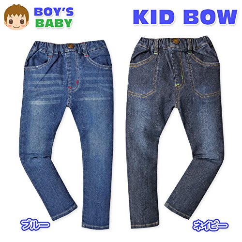ベビー服 男の子 ロング パンツ ボトム KIDBOW キッドバウ デニム 無地 ダメージ加工 ワッペン ウエストゴム 男児 ベビー (1.ブルー/90cm)