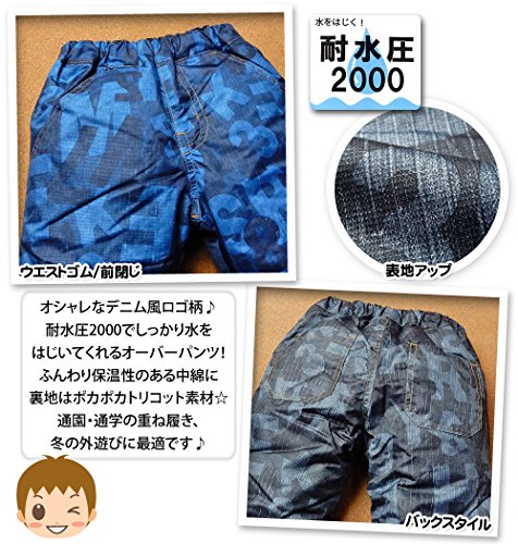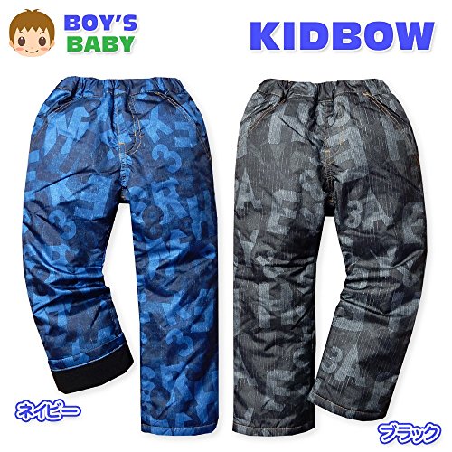 (ネイビー/80cm)ベビー服 男の子 オーバーパンツ スノーパンツ KID BOW キッドバウ ボトム 裏トリコット 中綿 耐水圧2000 水をはじく デニム風ロゴ柄 ウエストゴム 男児 ベビー