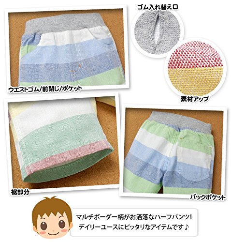 ( レッド/95cm) ベビー服 男の子 ハーフパンツ ボトム KIDBOW キッドバウ マルチボーダー柄 ウエストゴム 男児 ベビー