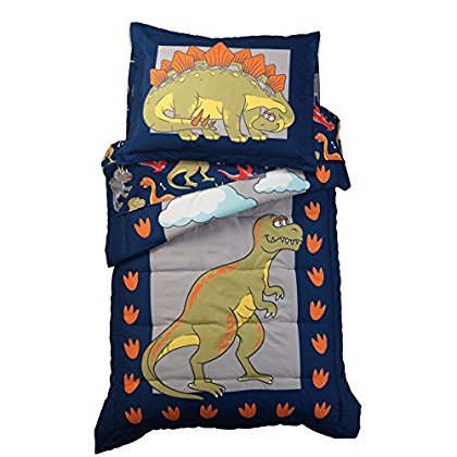 Inspired by the endless wonder of imagination, young children will adore this Dinosaur Toddler Bedding set. Ultra-comfortable and functional with a reversible comforter, flat sheet, fitted sheet and pillow case all in one convenient set.
