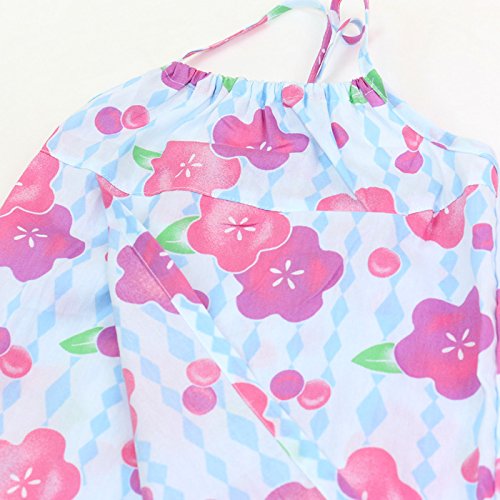 涼しげで可愛らしい花柄が素敵なサンドレスにもなる子供用の浴衣と帯のセット!夏まつりはカワイイ浴衣で思い出づくり!