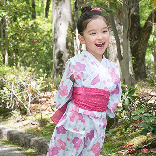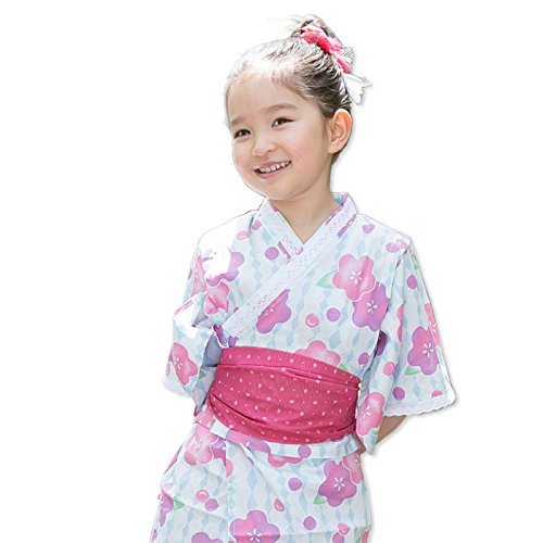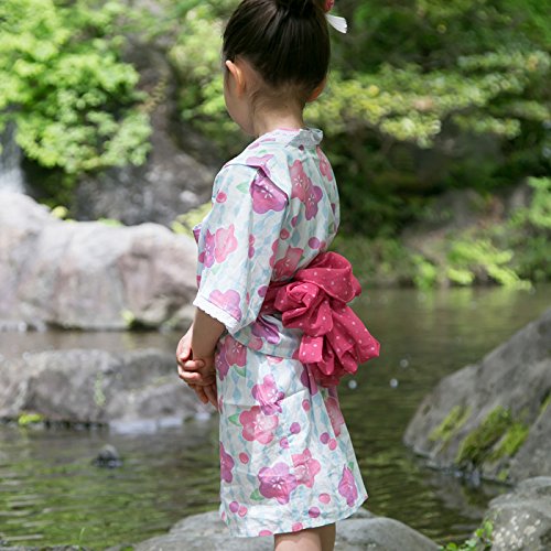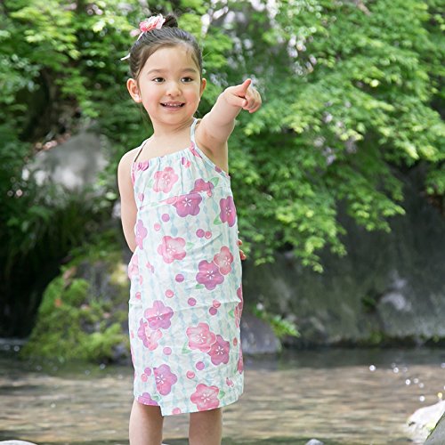 涼しげで可愛らしい花柄が素敵なサンドレスにもなる子供用の浴衣と帯のセット!夏まつりはカワイイ浴衣で思い出づくり!
