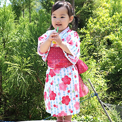 涼しげで可愛らしい花柄が素敵なサンドレスにもなる子供用の浴衣と帯のセット!夏まつりはカワイイ浴衣で思い出づくり!