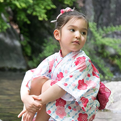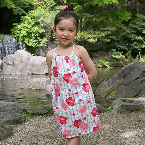涼しげで可愛らしい花柄が素敵なサンドレスにもなる子供用の浴衣と帯のセット!夏まつりはカワイイ浴衣で思い出づくり!