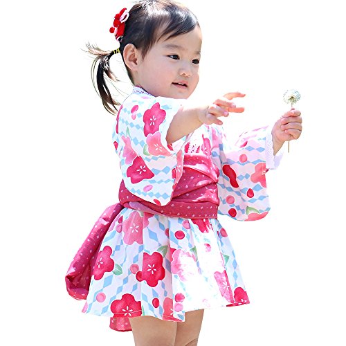 浴衣 子供 セット キッズ ベビー ワンピース 花柄 帯セット ドレス Pinky Flash ピンク 80cm 3357080607PI80