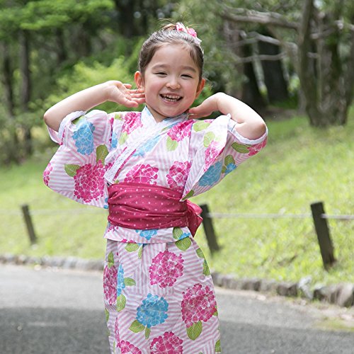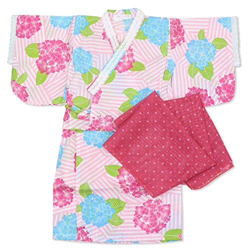 浴衣 子供 セット キッズ ベビー ドレス サンドレス セパレート 花柄 帯セット Pinky Flash アジサイ赤 100cm 3357090607RE100
