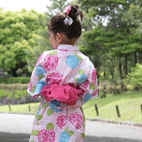 涼しげで可愛らしい花柄が素敵なサンドレスにもなる子供用の浴衣と帯のセット!夏まつりはカワイイ浴衣で思い出づくり!