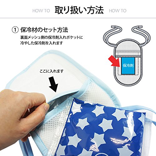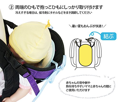 裏面のポケットに冷やした保冷剤を入れて両端の紐で取り付けるだけで熱くなる赤ちゃんの背中や蒸れやすいママとの間にも使えます。