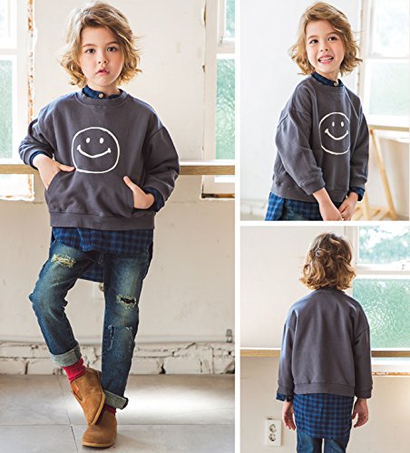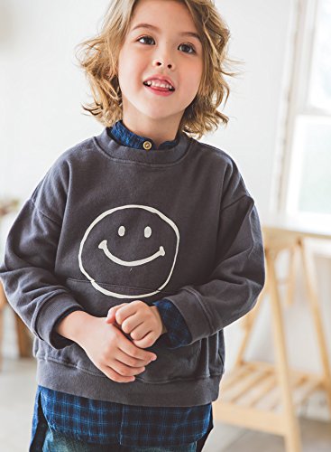 GREEN TOMATO スマイル柄 トレーナー スウェット チャコール 150サイズ【タグ表記15】