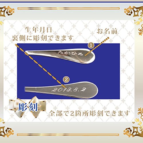 出産祝い お食い初め 純銀 名入れ ベビースプーン 喜ばれるギフト プレゼントに最適 (3.スプーンに名前と生年月日の彫刻)