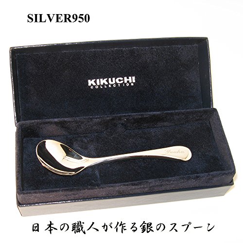 かたちが可愛いロングセラーです。赤ちゃんの名前と生年月日が彫刻されます。日本の職人が作る銀の赤ちゃんスプーン。KIKUCHI COLLECTIONの銀のスプーンは全て実際に使用できます。どんどん使って傷が付いてこそ本当の記念の品になります。食事の度に使って欲しい逸品です。使い込んだ味わいはまた別格なものです。出産祝いとして世界にひとつしかない銀のスプーンは喜ばれています。