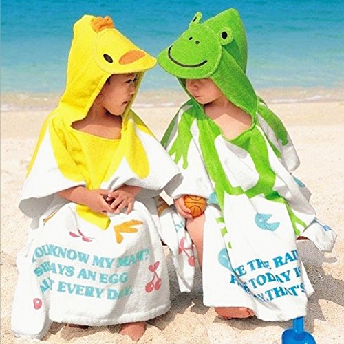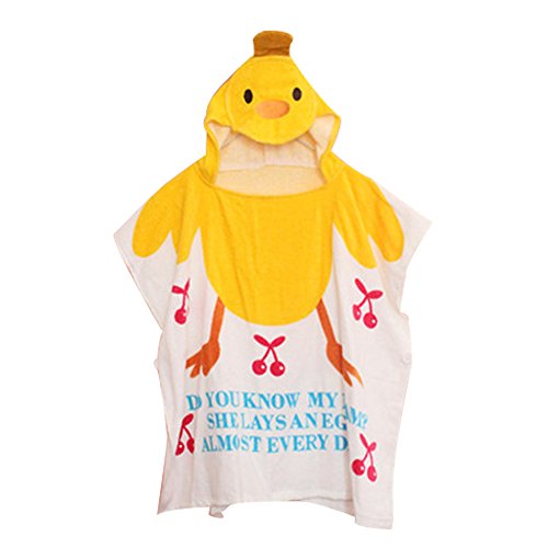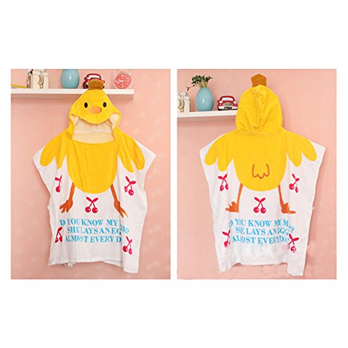 KINDOYO ベビー キッズ 子供 バスタオル ビーチタオル スイミング 動物柄 ポンチョ型 フード付き バスローブ / イエロー