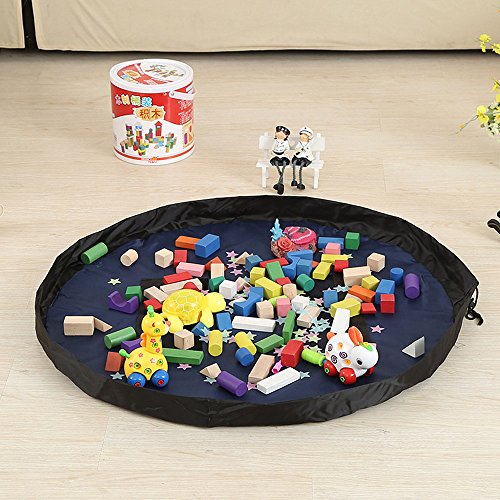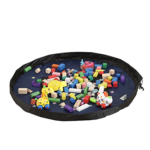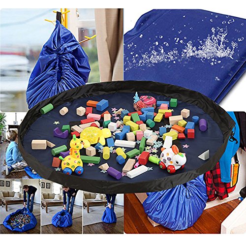 KINDOYOポータブルチャイルド玩具オーガナイザー収納袋マットボックスラグカーペットベビープレイマットアウトドアクリーンアップドローストリングバッグ(100cm)ロイヤルブルー