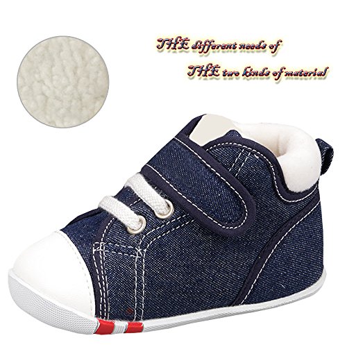 KINDOYO 赤ちゃん ベビーシューズ 暖かい スニーカー ベビーシューズ ファーストシューズ 男の子 女の子 子供靴 , ブルー(スエード)