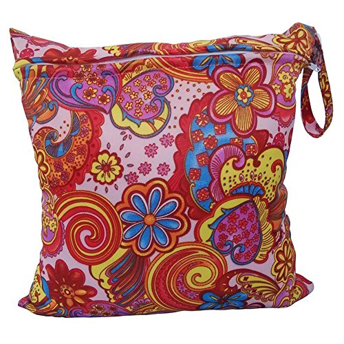 KINDOYO 赤ちゃん おむつバッグ 防水 ダブルジッパー バッグ 収納袋 旅行用 再利用可能 トートバッグ (カラフルな花)