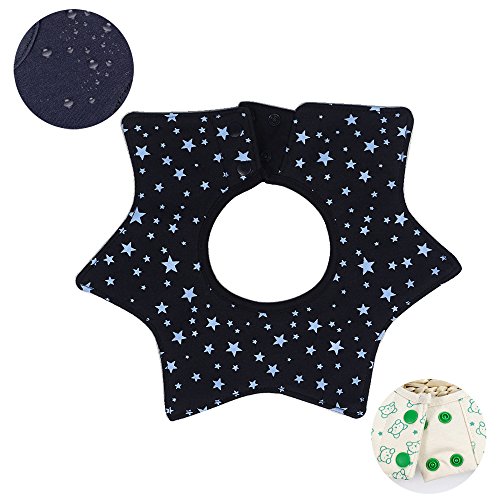 KINDOYO ビブ ベビー エプロン 子供 男の子 新生児~ 防水 肌に優しい 綿 4層厚さ 便利360°回転可 よだれかけ 星デザイン お洒落 出産祝い 保育園用 家用1-3歳の赤ちゃん (ブラックスターズ)