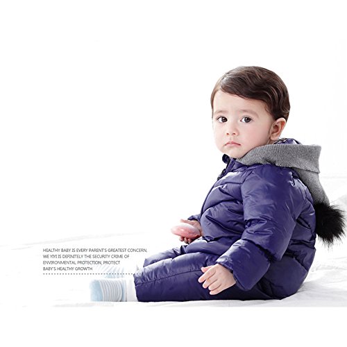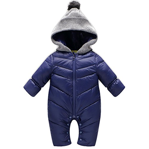 KINDOYO 新生児 子供たちワンピース 冬 ラブリー ベビー カバーオール アニマル ロンパース 男女ユニセックス 寝間着 厚い シャム フード付き ボディスーツ , ブルー