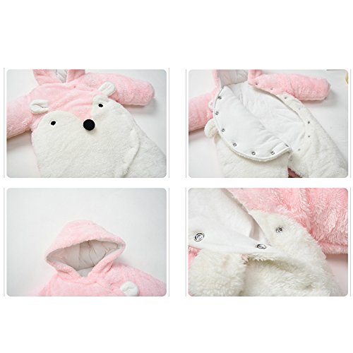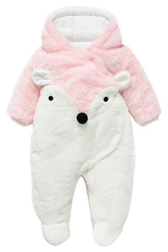 KINDOYO 新生児 冬 ラブリー ベビー カバーオール アニマル ロンパース 男女ユニセックス 寝間着 厚い シャム フード付き ボディスーツ , ピンク